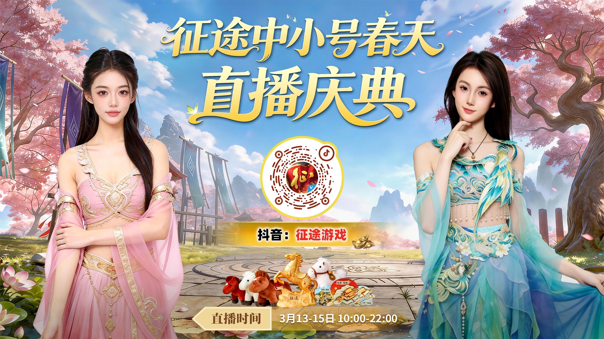 ■相遇春天直播盛宴:3月13日~3月15日,连续三天高能开播!10:00-22:00锁定“征途游戏”直播间,共迎中小号春天!美女主播团舞惊喜不断,豪华礼包码日日领,趣味小游戏实时弹幕互动!提前关注账号预约直播,抢马上暴富礼盒、定制周边等海量豪礼!